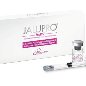 Jalupro HMW, a dermal biorevitalizer, is an injectable solution containing a combination of high molecular weight hyaluronic acid and amino acids, used to improve skin texture, reduce wrinkles, and address signs of aging, including scars and depressions.