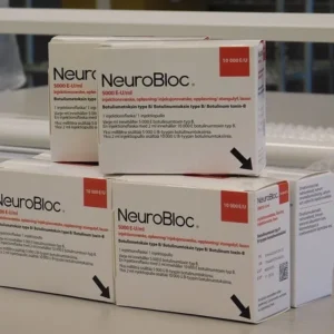NeuroBloc 10000 Units (also known as Myobloc in some regions) is a botulinum toxin type B injectable used primarily for therapeutic indications, such as the treatment of cervical dystonia and excessive salivation (sialorrhea). Manufactured by Solstice Neurosciences, this high-potency formulation offers an alternative for patients who are resistant to botulinum toxin type A (e.g., Botox®, Dysport®, Xeomin®).